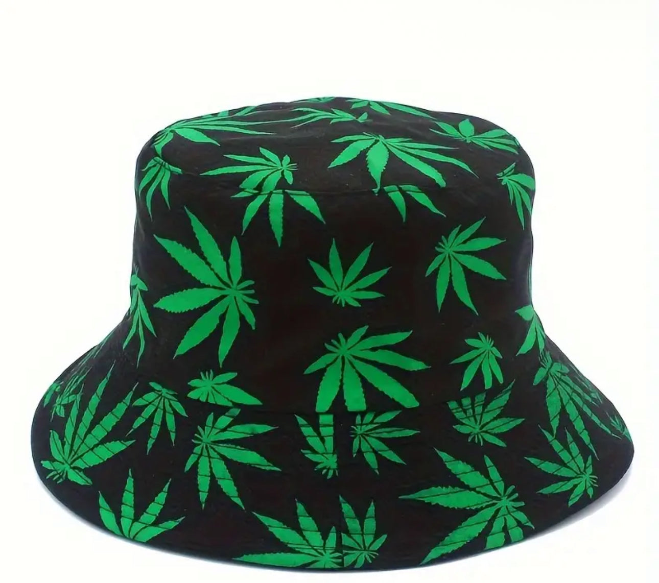 Unisex Polyester Leaf Print Bucket Hat Reversible Outdoor Cap